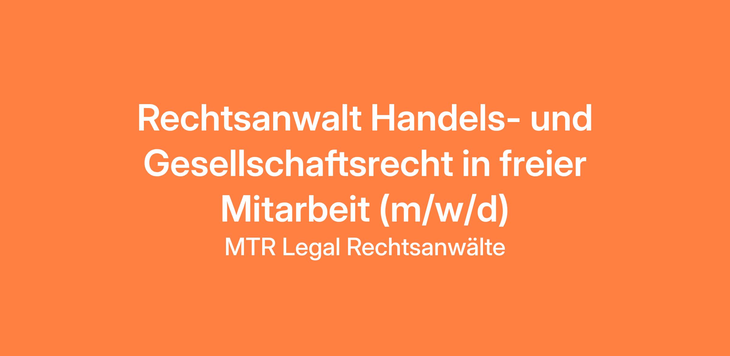 Rechtsanwalt Handels- und Gesellschaftsrecht in freier Mitarbeit (m/w/d)