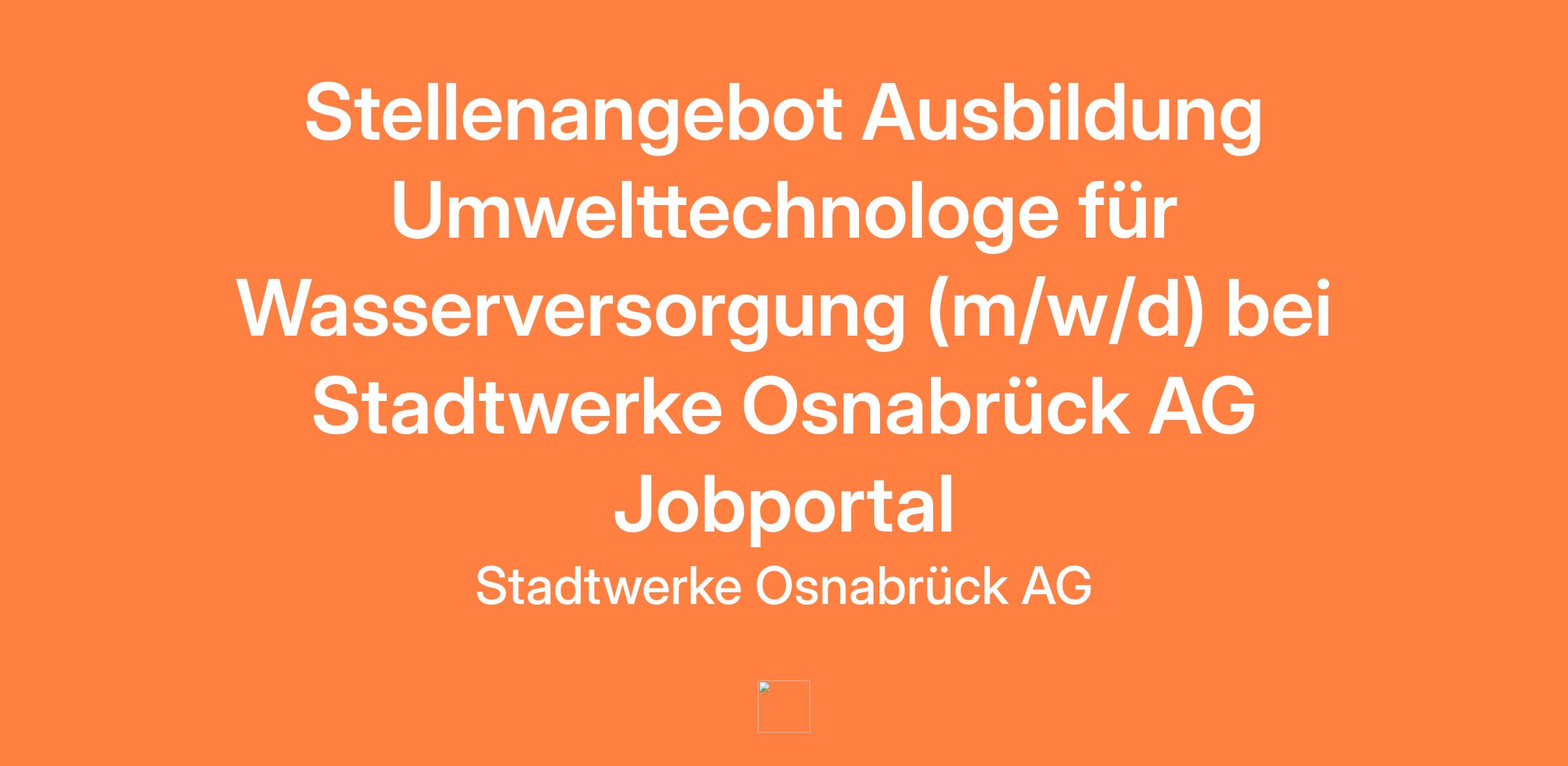 Stellenangebot Ausbildung Umwelttechnologe für Wasserversorgung (m/w/d) bei Stadtwerke Osnabrück AG Jobportal